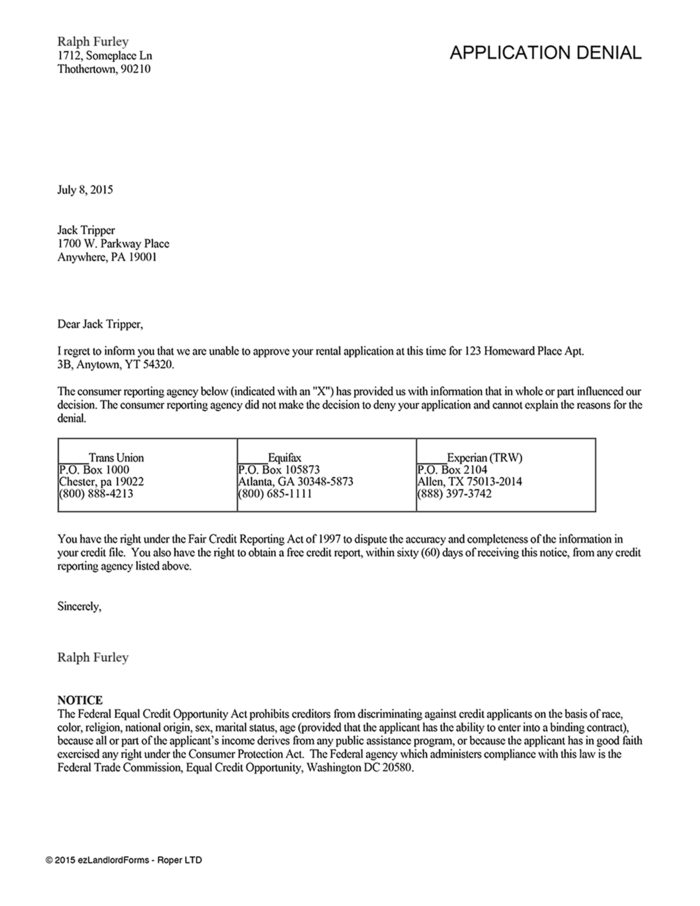 Denial Of Rental Application Property Management Forms Contracts Agreements Templates Download Save Print